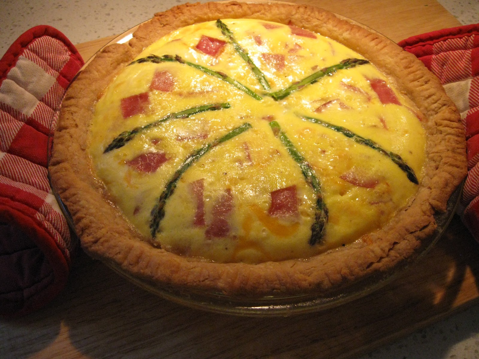 4 eggs, 1 1/2 C milk or half & half, salt, pepper, and a few asparagus spears.